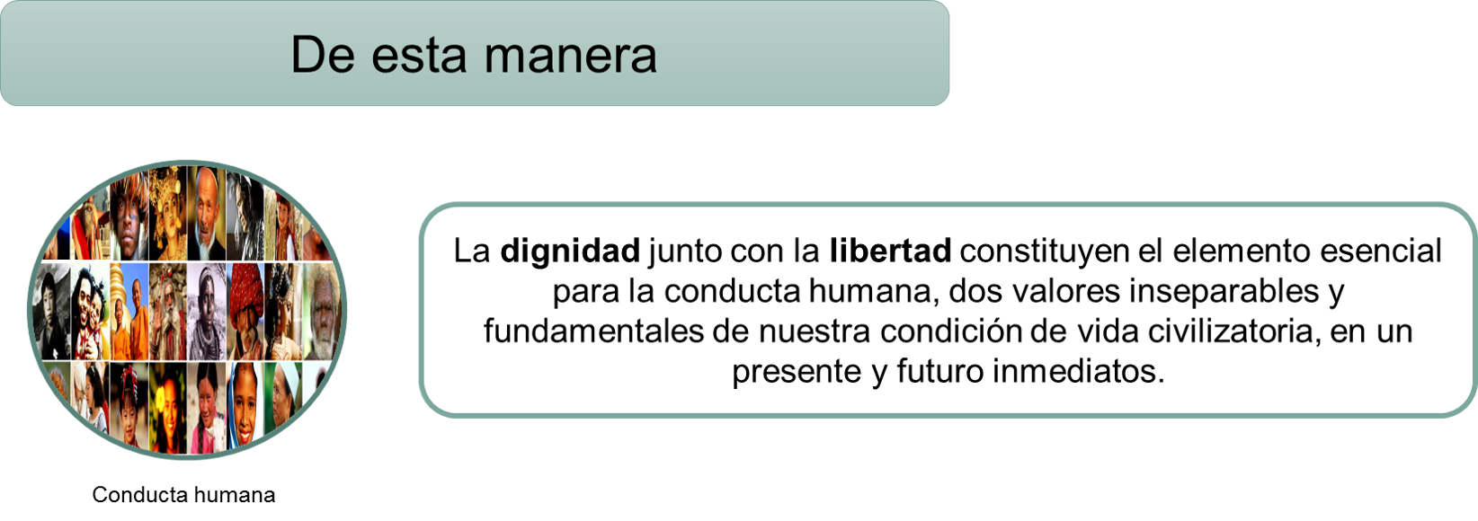 Estas dos condicionantes –dignidad y libertad– posibilitan la oportunidad de concebir y crear proyectos de desarrollo sustentable, donde prevalezca una calidad de vida aceptable, que permita gozar de los derechos fundamentales y plantear la eliminación de las condiciones de desigualdad e inequidad prevalecientes en nuestras sociedades.