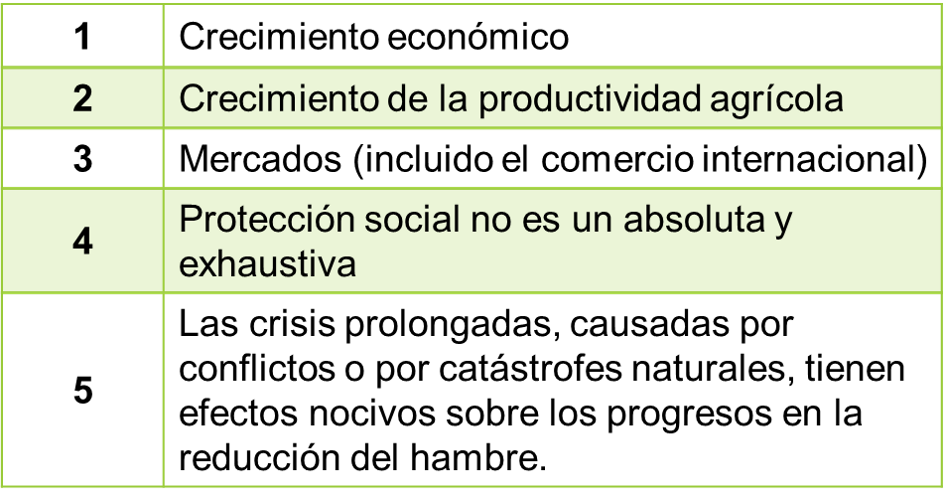 De esta forma, queda planteado que la inseguridad alimentaria continúa, que se avanza poco en alcanzar una mejor nutrición y que el Objetivo del Milenio para 2015 no logró cumplirse.