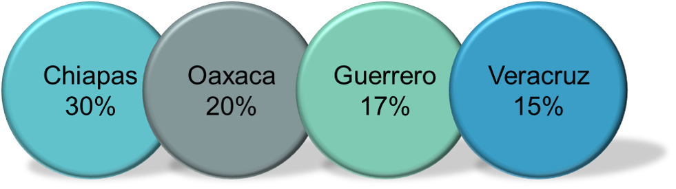 En este estudio, se aborda el problema de la desigualdad en salud: hay 100 municipios, los más marginados de nuestro país, que los habitan población predominantemente indígena. Se concentran en: