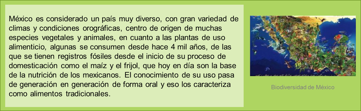 Los alimentos tradicionales mexicanos son una rica fuente de nutrientes saludables suficientes para la vida, que ayudan a la prevención de enfermedades sobre todo de tipo crónico, que se asocian con el envejecimiento, por sus altos contenidos de compuestos bioactivos (Navarro, 2015).